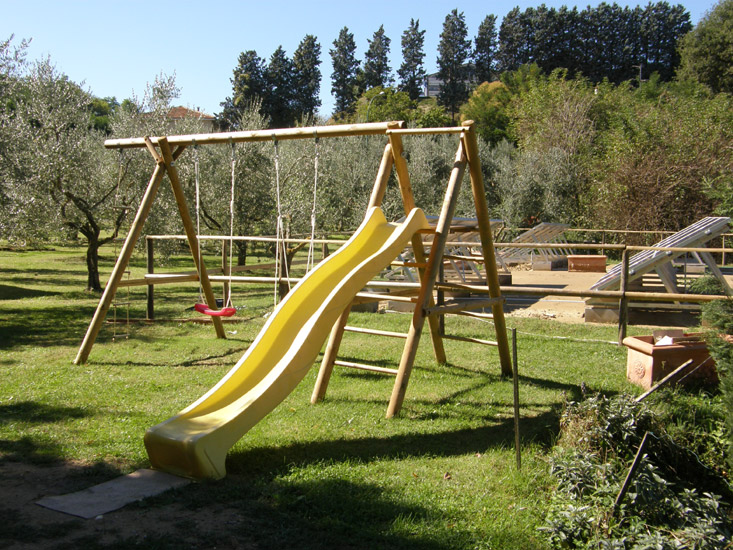 All'interno del giardino del casale l'oliveto, è stato realizzato un campo da bocce, un parco giochi per bambini con altalene e scivolo...